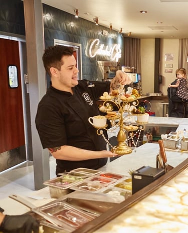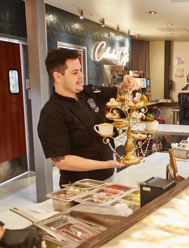 From there, various job opportunities with several incredible pastry chefs across DFW, lead him to excel throughout his career as a young chef. At 23, he secured the role of VIP Pastry Chef at the 2021 US Open in NYC; and a few months later made his way onto the Food Network where he competed on Holiday Wars Season 4. His passion for his craft eventually led him to take a position for 3 years as a fine dining Executive Pastry Chef, creating house-made plated desserts, breads, gelatos, & baked goods! Now, Daniel's passion is turning clients wildest dessert dreams into confectionary realities! No idea is too wild to turn into an edible, show stopping centerpiece.